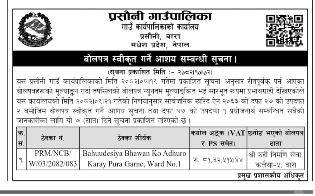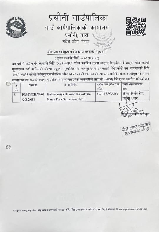 आशयको पत्रको सूचना ।