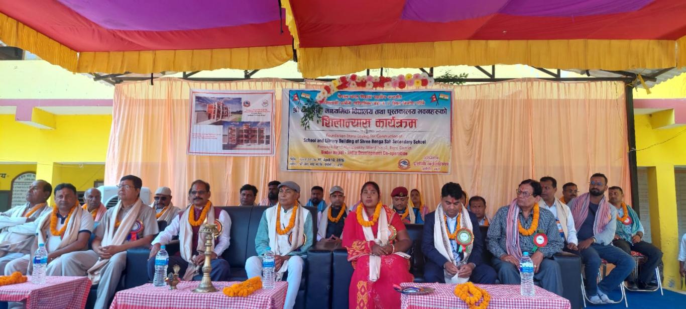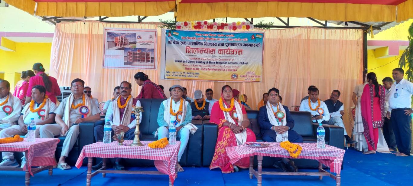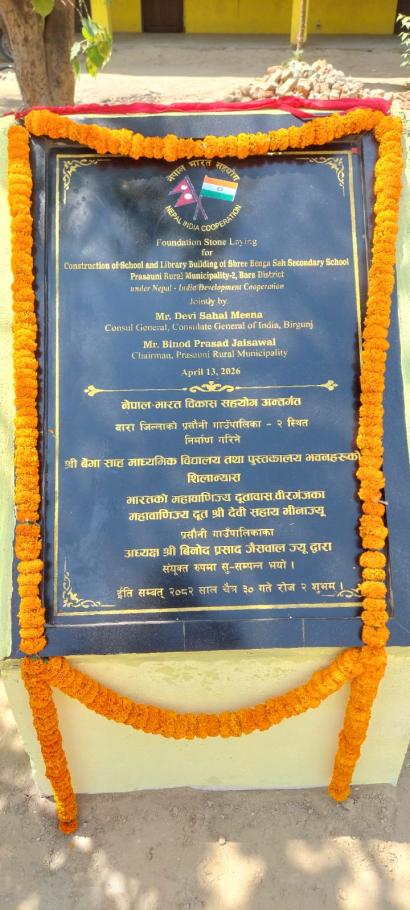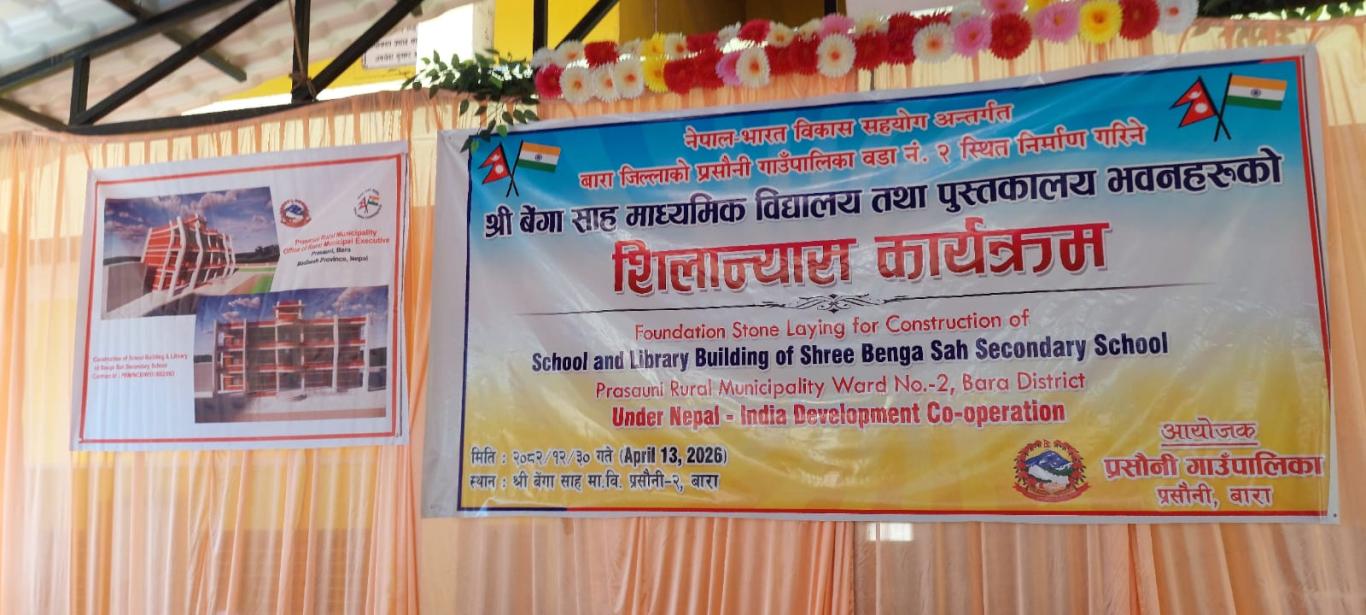 HICDPs परियोजना अन्तर्गत प्रसौनी गाउँपालिका वडा नं. २ स्थित निर्माण गरिने श्री बेंगा साह माध्यमिक विधालय तथा पुस्तकालय भवनहरुको शिलान्यास भारतको महावाणिज्य दूतावास वीरगंजका महावाणिज्य दूत श्री देवी सहाय मीनाज्यू तथा प्रसौनी गाउँपालिकाका गाउँपालिका अध्यक्ष श्री विनोद प्रसाद जैसवाल ज्यूद्धारा संयुक्त रुपमा सु-सम्पन्न भयो ।