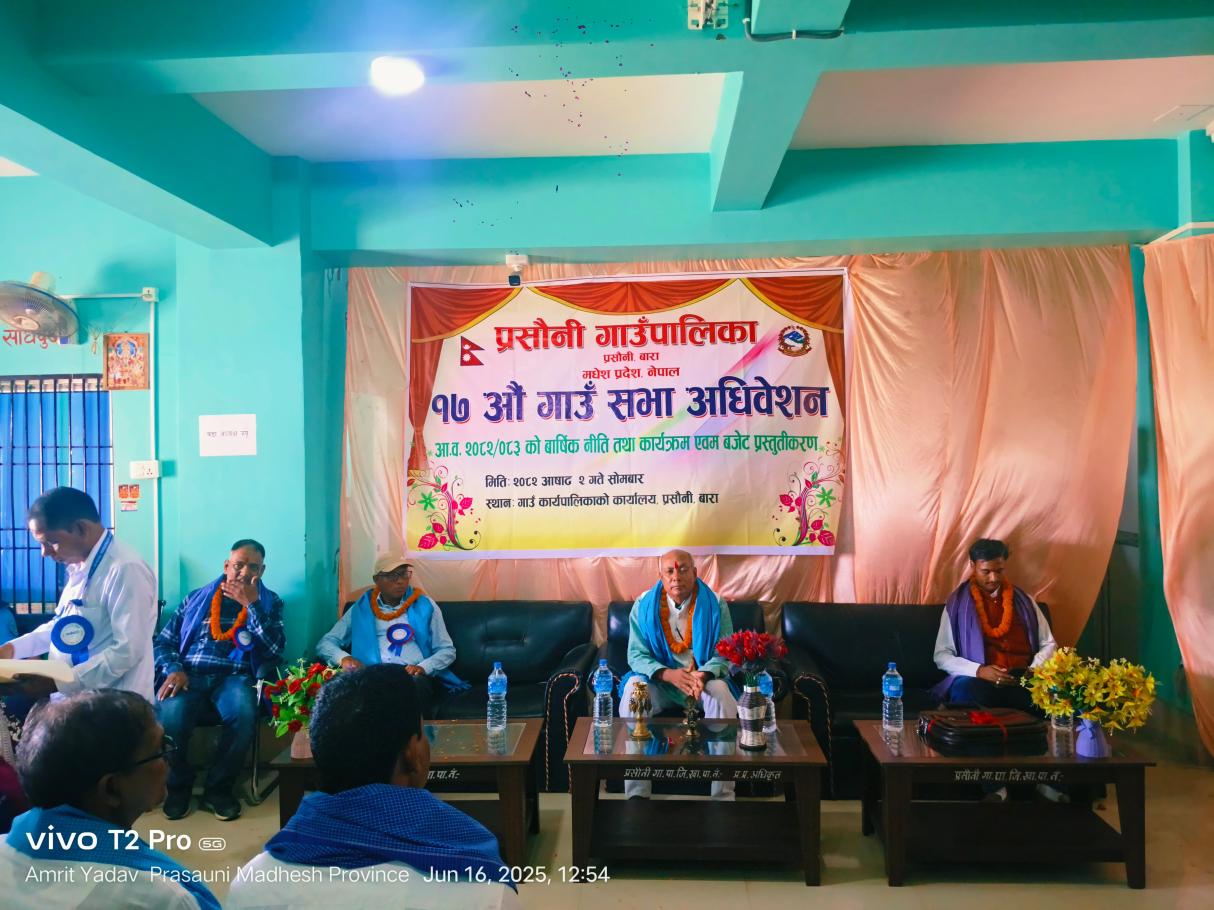 आ.व. २०८२।०८३ को वार्षिक नीति तथा कार्यक्रम एवम् बजेट प्रस्तुतिकरण आज मिति २०८२।०३।०२ गते सोमवारका दिन गाउँ सभाका सभा अध्यक्ष श्री विनोद प्रसाद जैसवाल ज्यूको अध्यक्षतामा गाउँ सभा सदस्य ज्यूहरु, कर्मचारी मित्रहरु, समाजसेवी लगाएत पत्रकार मित्रहरुको उपस्थितिमा सम्पन्न भएको छ ।