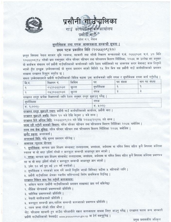 » सुपरीवेक्षक तथा गणक आवश्यकता सम्बन्धी सूचना |
