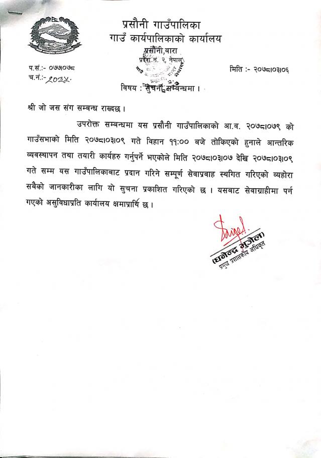 आ.व. २०८१।०८२ को सम्पति विवरण बुझाउने सम्बन्धि सूचना ।